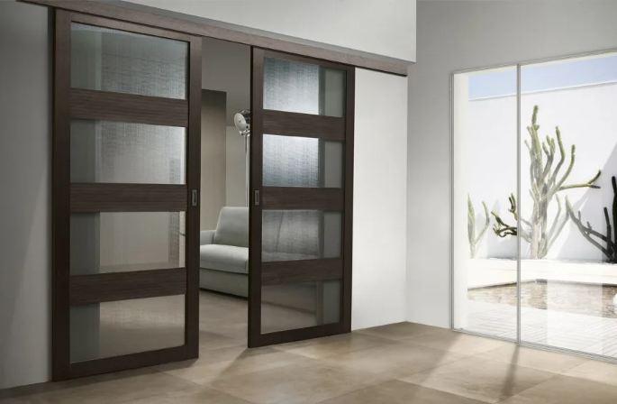 Двери-купе (раздвижные двери) открываются вдоль стены или внутрь конструкции, не требуя свободного пространства для распахивания. Их часто используют как в жилых, так и в офисных помещениях.